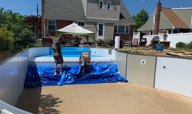 Install vinyl liner into pool.