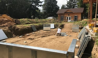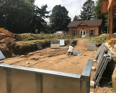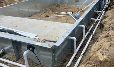 Set steel walls in place, level & square the pool, construct any steps, sundecks or benches required inside the pool.