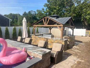 Take your outdoor living to the next level with a custom-designed outdoor kitchen and BBQ area. Whether you're hosting family gatherings or enjoying a quiet evening by the grill, our expertly crafted outdoor kitchens provide functionality, durability, and style.