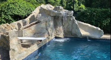 Enhance your pool with a custom rockslide waterfall, blending natural beauty with endless fun. Designed to mimic the look of real rock formations, our rockslide waterfalls create a stunning focal point while adding a touch of adventure to your backyard oasis.