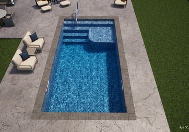 Available Sizes: 8ft. x 16ft. - 10ft. x 20ft. - 12ft x 24ft Features: Full-End Stair with Side by Side Stair and Tanning Ledge with Dual Benches